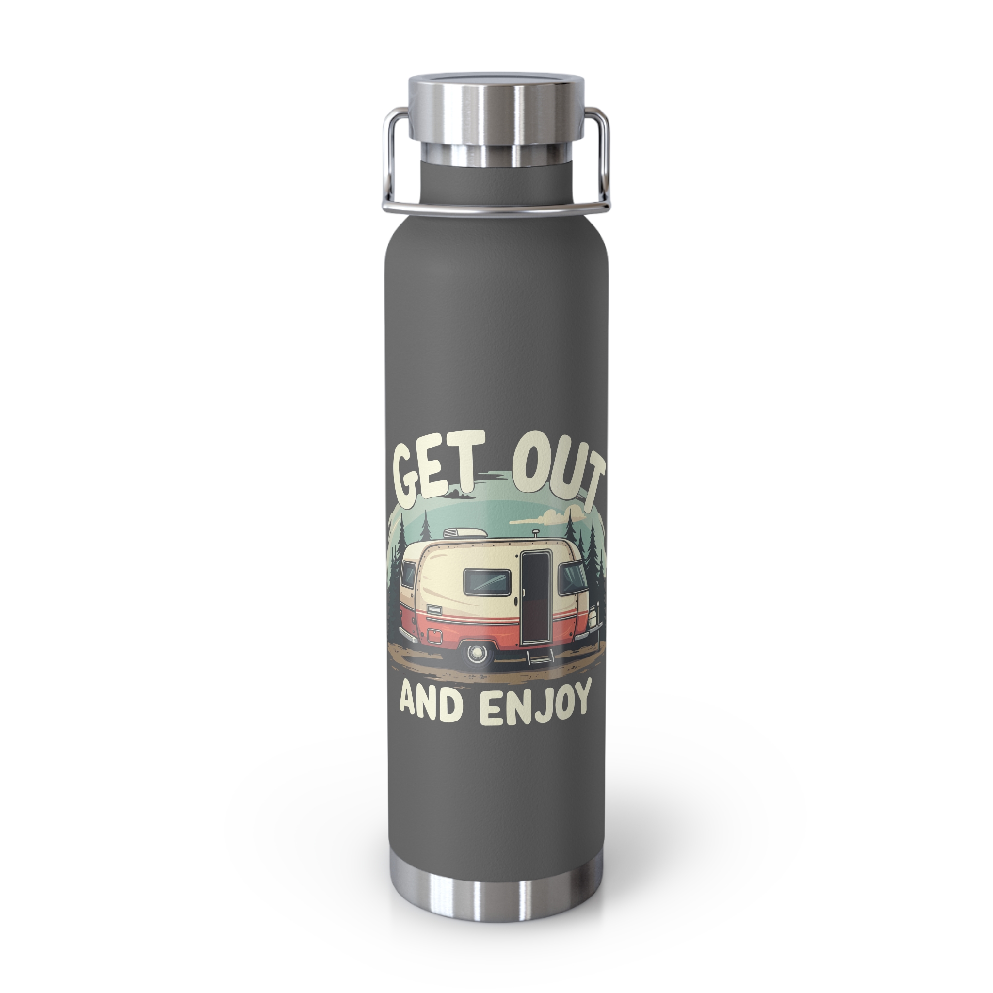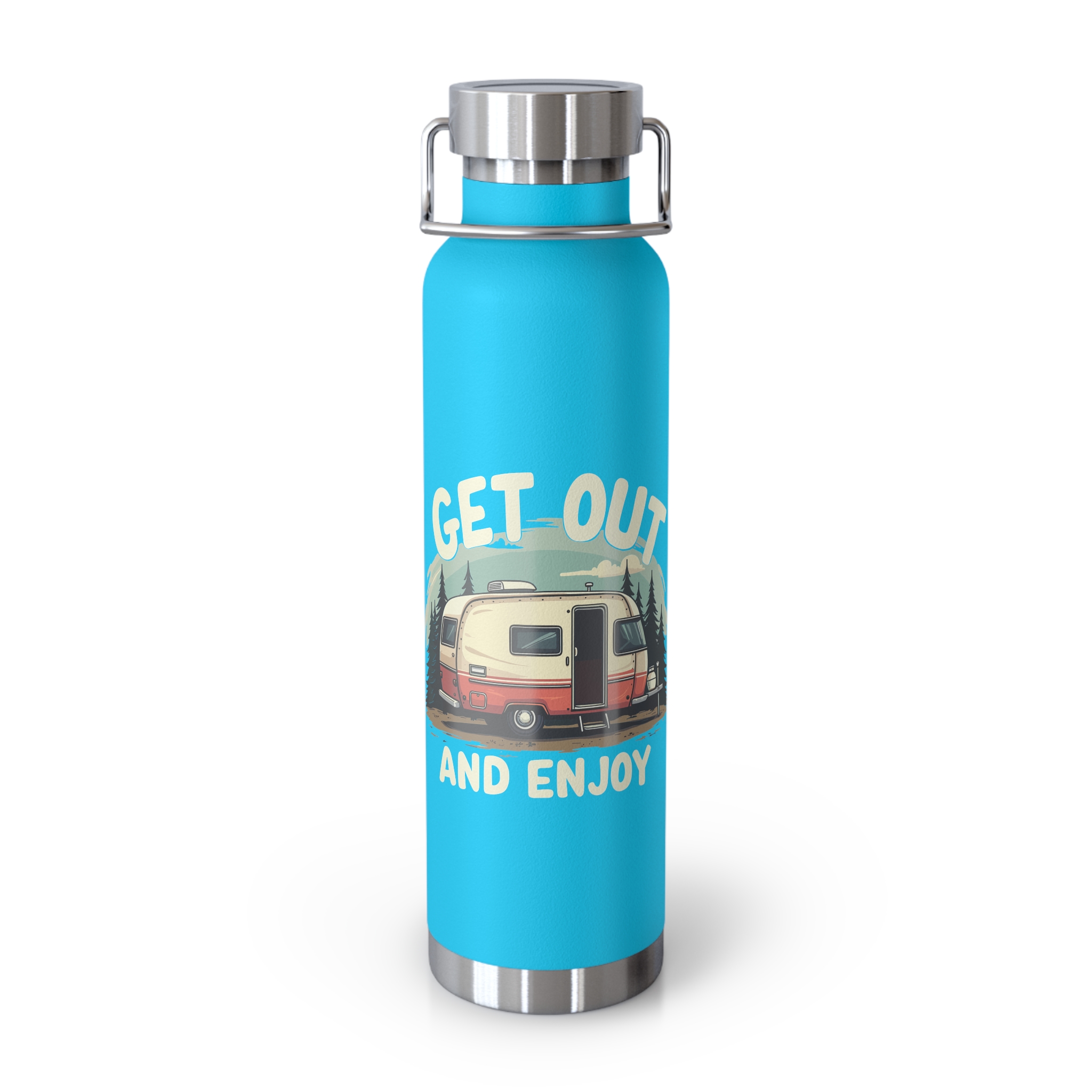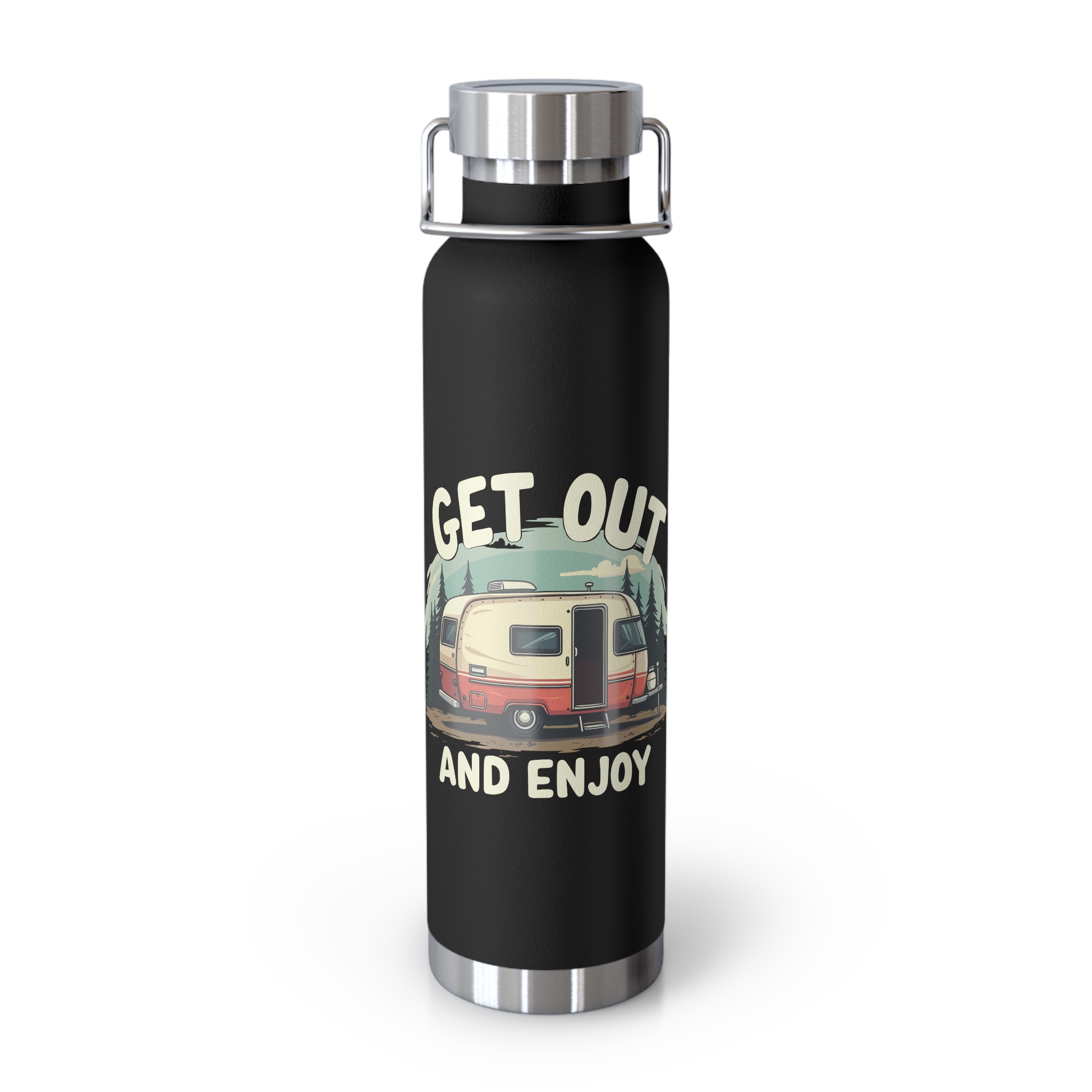 The Get Out and Enjoy Camper Water Bottle is perfect for outdoor enthusiasts and nature lovers. With its durable stainless steel construction and copper insulation, this bottle keeps your drinks hot or cold for hours on end. The spill-resistant lid and wide opening make it easy to fill, pour, and enjoy your favorite beverages on the go. The powder-coat finish ensures durability, while the BPA-free materials give you peace of mind. Whether you're hiking, camping, or just running errands, this bottle is a must-have accessory.