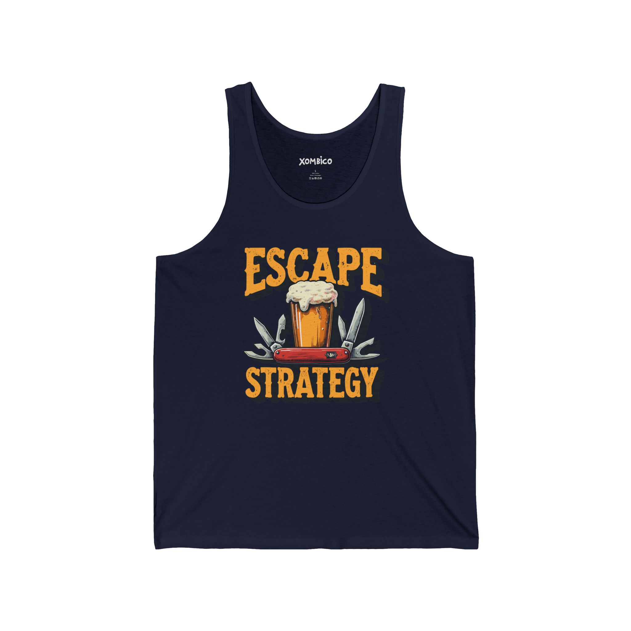 Get ready to tackle the zombie apocalypse in style with our "Escape Strategy" Bella+Canvas Tank-Top! Perfect for those hot summer days when you need to stay cool while plotting your next move, this tank is made from breathable fabric that keeps you comfy as you sip on a cold beer. Featuring a fun design that reminds you to keep your priorities straight—survive and have a drink—the tank serves as both armor against the undead and a statement of your survival skills. So throw on this tank, grab your favorite brew, and show those zombies that you're not just surviving; you're thriving! Cheers to staying stylishly ahead of the game!