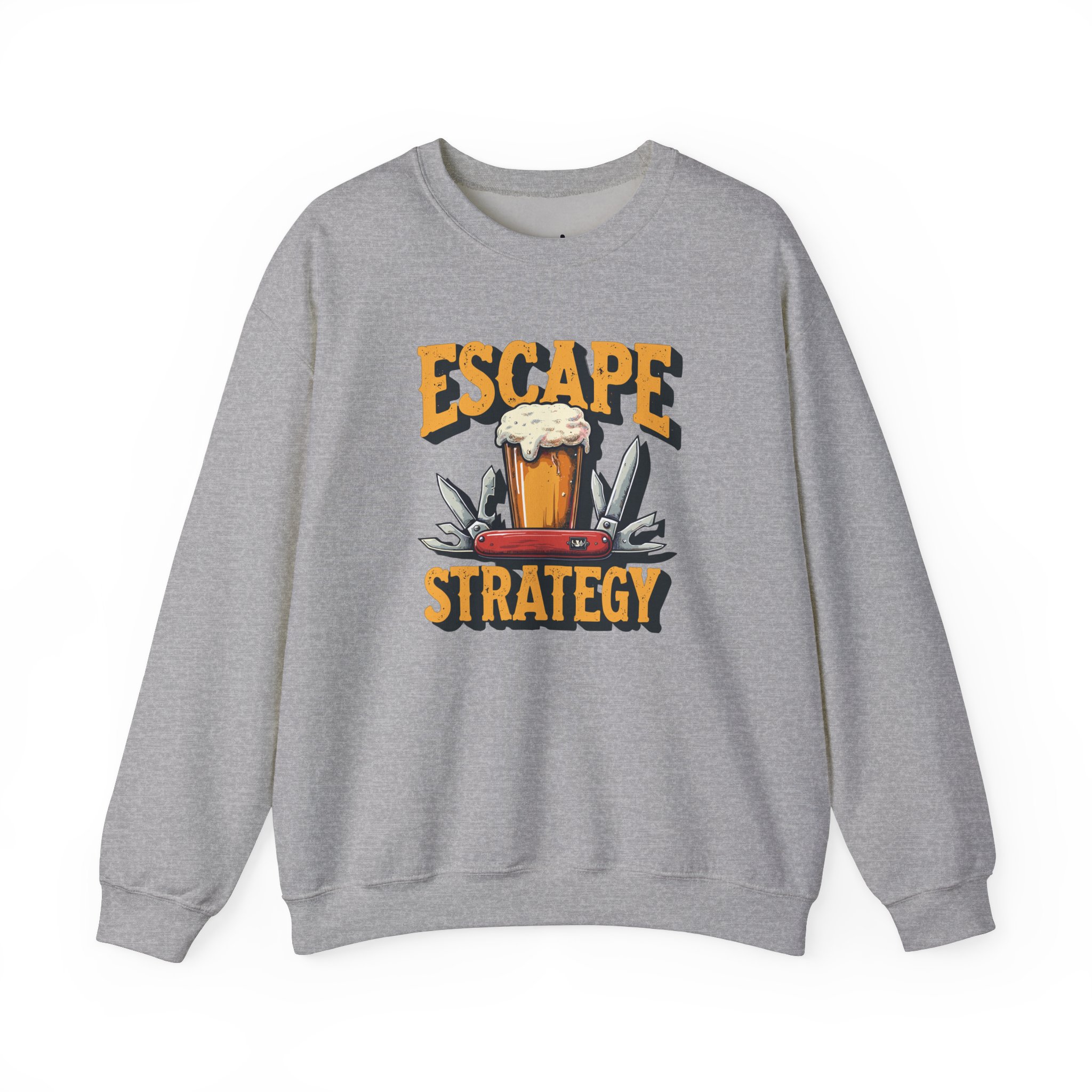 Prepare for the zombie apocalypse in our "Escape Strategy" Crewneck Sweatshirt! This comfy classic is your go-to gear for those cool evenings spent plotting your escape—or just kicking back with a cold beer. Made from soft, durable fabric, it keeps you cozy while you strategize how to outsmart the undead. With its playful design, this sweatshirt serves as a cheeky reminder that when life gets hairy, sometimes all you need is a brew and a good laugh. So slip into this crewneck, grab your favorite pint, and show those zombies that nothing can derail your plans—especially not with a drink in hand! Cheers to surviving with style!