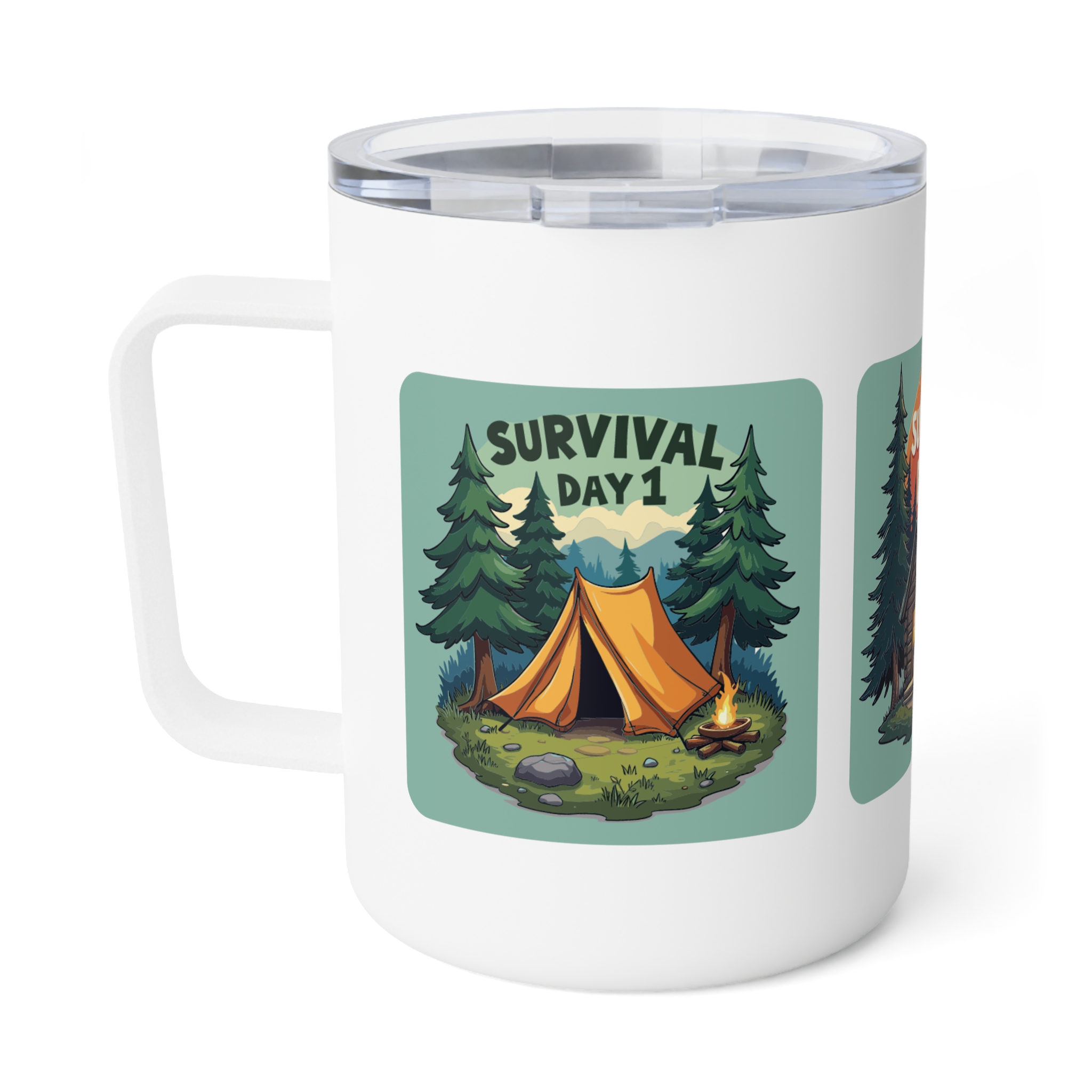 Introducing the Survival Day 1 to 1000 Insulated Coffee Mug: your ultimate companion for conquering both the wild outdoors and the chaos of daily life! This sleek 10oz mug keeps your coffee hot and your sense of humor even hotter, perfect for pondering life's mysteries—like why you can never find matching socks. Whether you're braving a camping trip or just navigating your couch, this insulated wonder ensures every sip is a warm reminder that survival is all about enjoying the little things. So grab yours and toast to every adventure—because in the wilderness of everyday life, every sip counts!