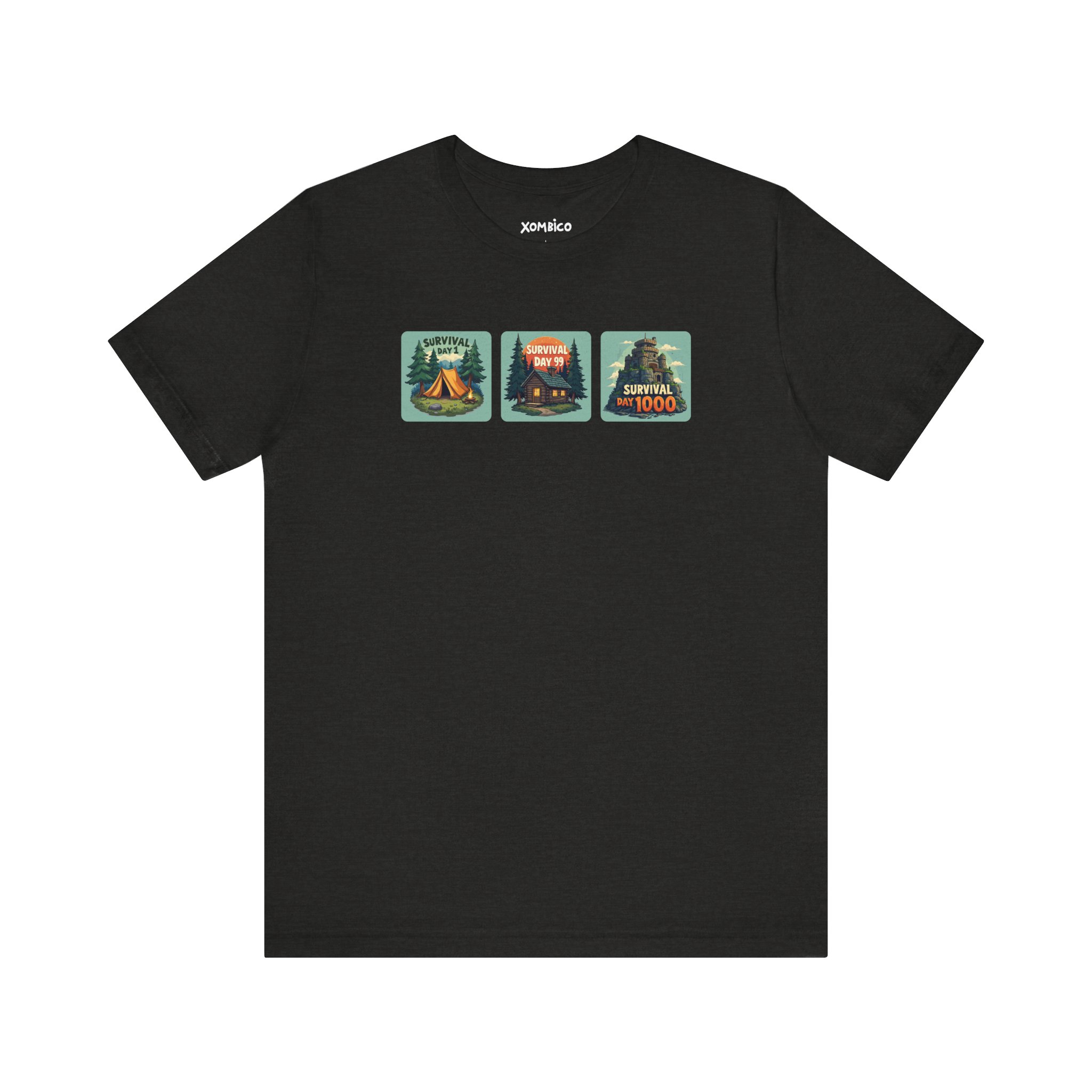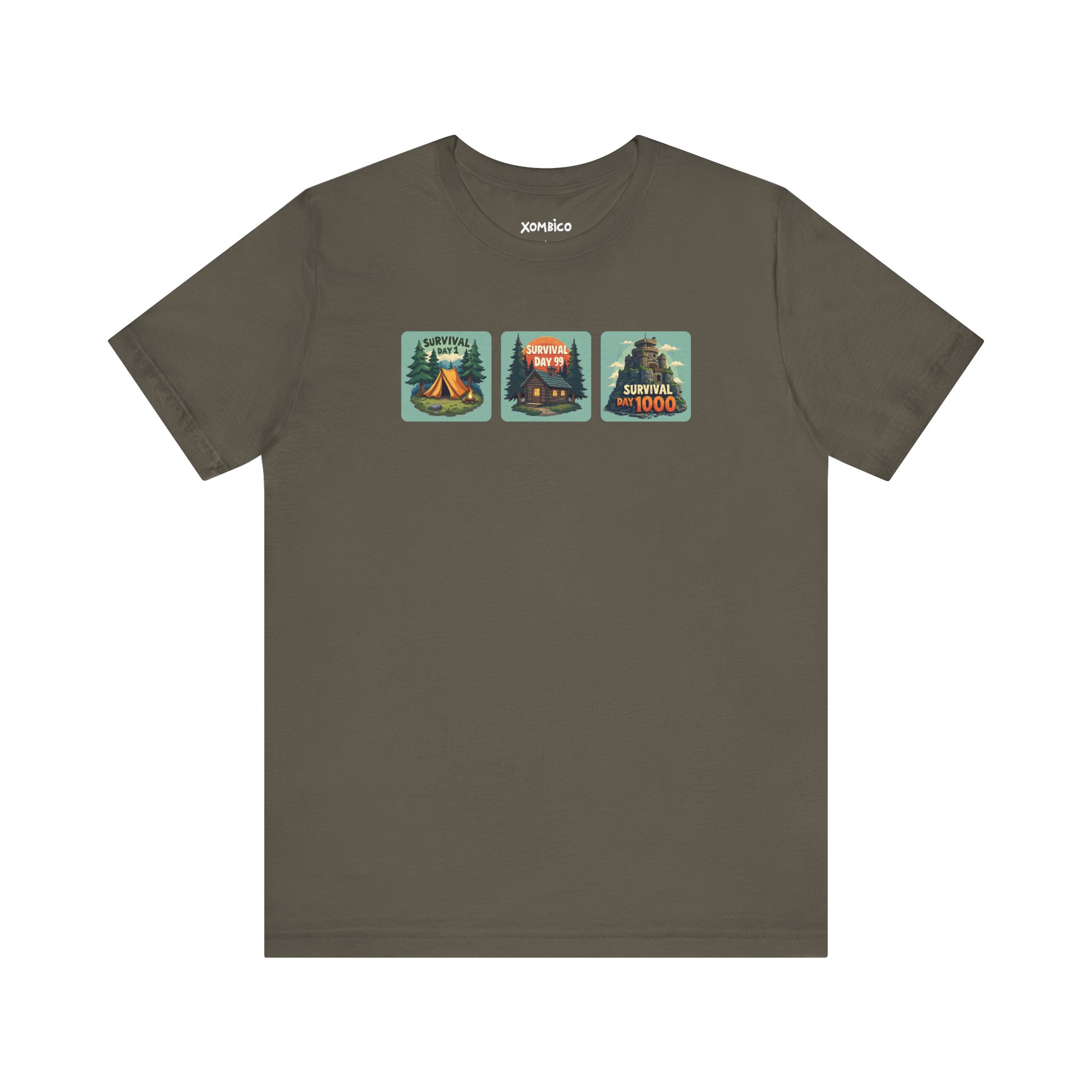Whether you've survived 1 day or 1,000 days in the wilderness (or just in the office), this T-shirt has got you covered! Made from soft, breathable fabric that's tougher than your first camping trip, you'll look effortlessly stylish while contemplating your next survival feat. Perfect for adventurers, office warriors, or anyone who's endured an epic Monday! 🏕️👔
