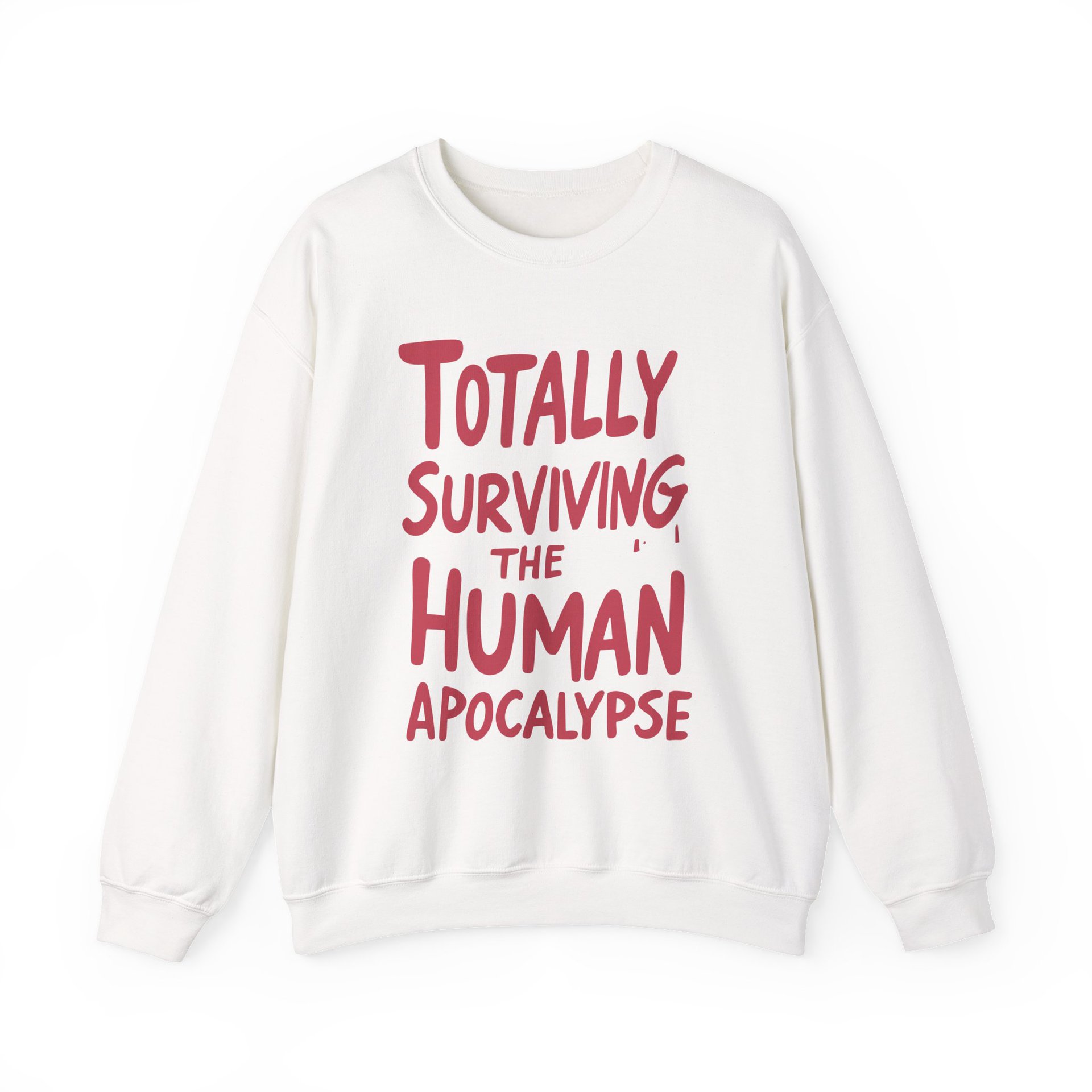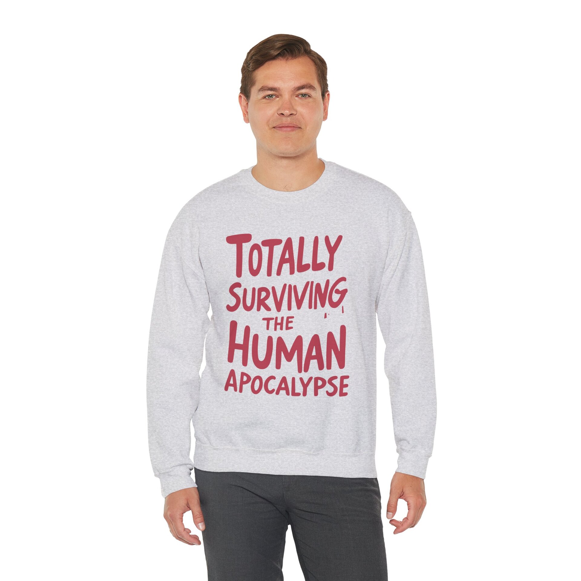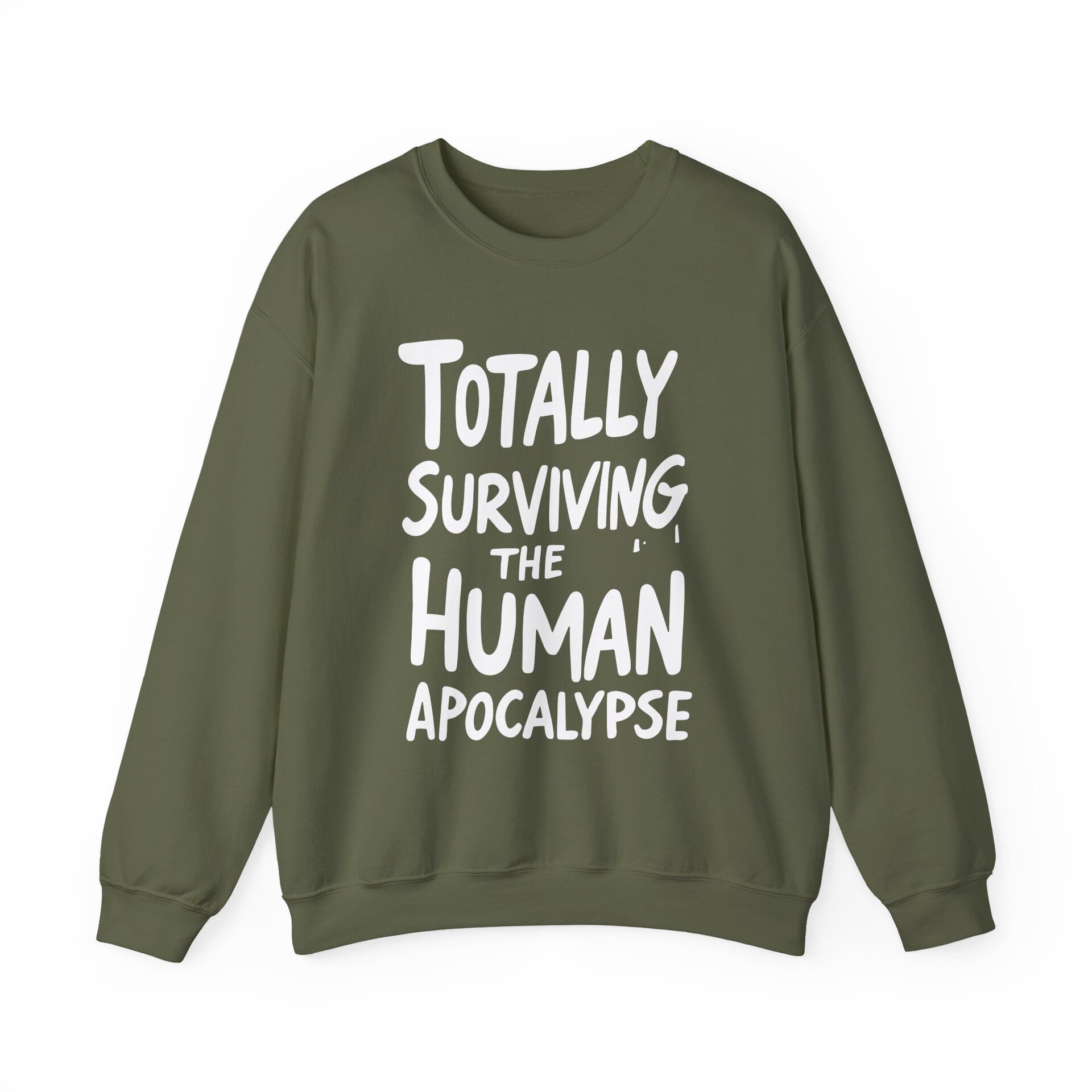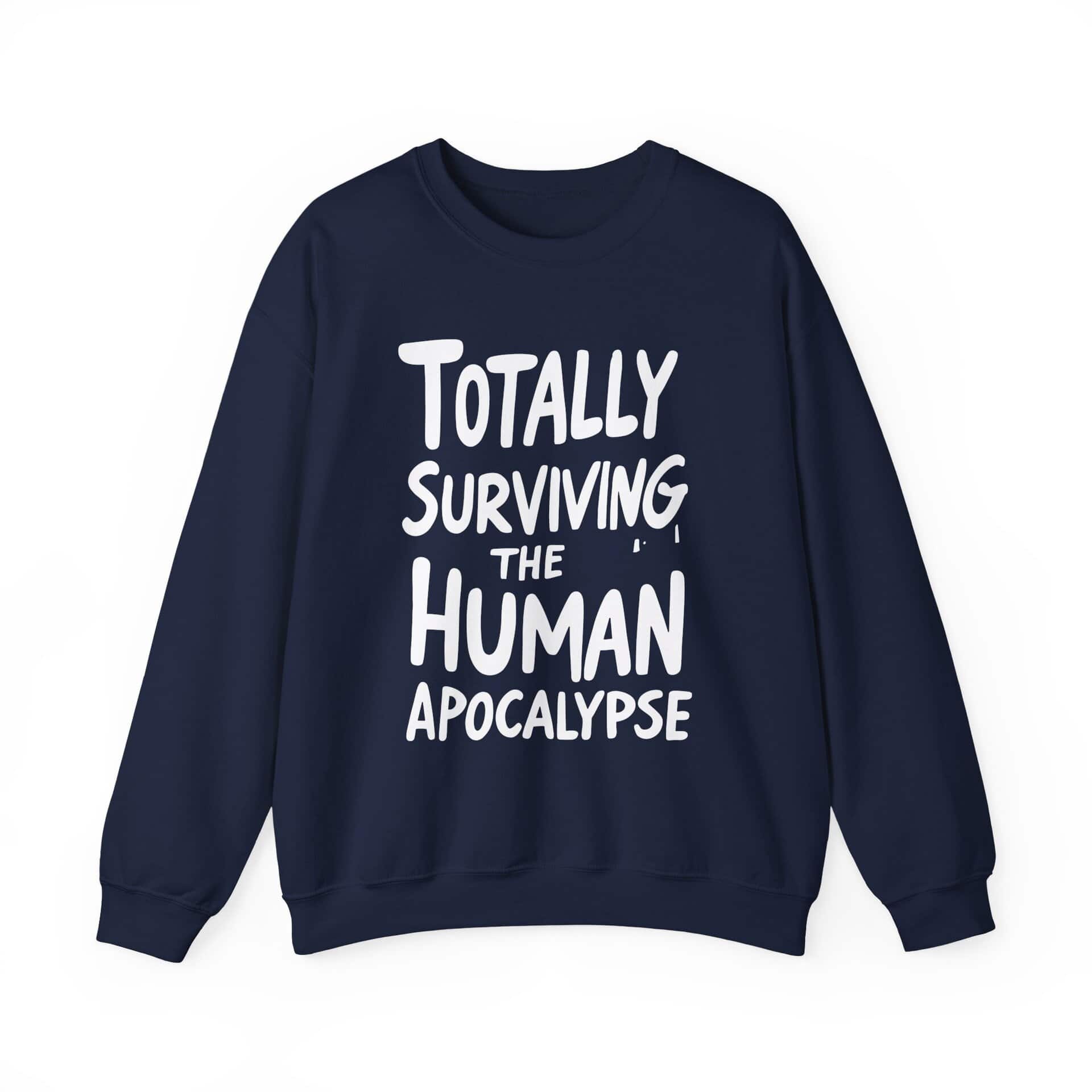 This crewneck is your wearable declaration of resilience, sarcasm, and temperature regulation. Whether you're braving the chill of a fallout shelter or just enduring another awkward bunker potluck, this sweatshirt says, “I’m still here, still warm, and still hilarious.”