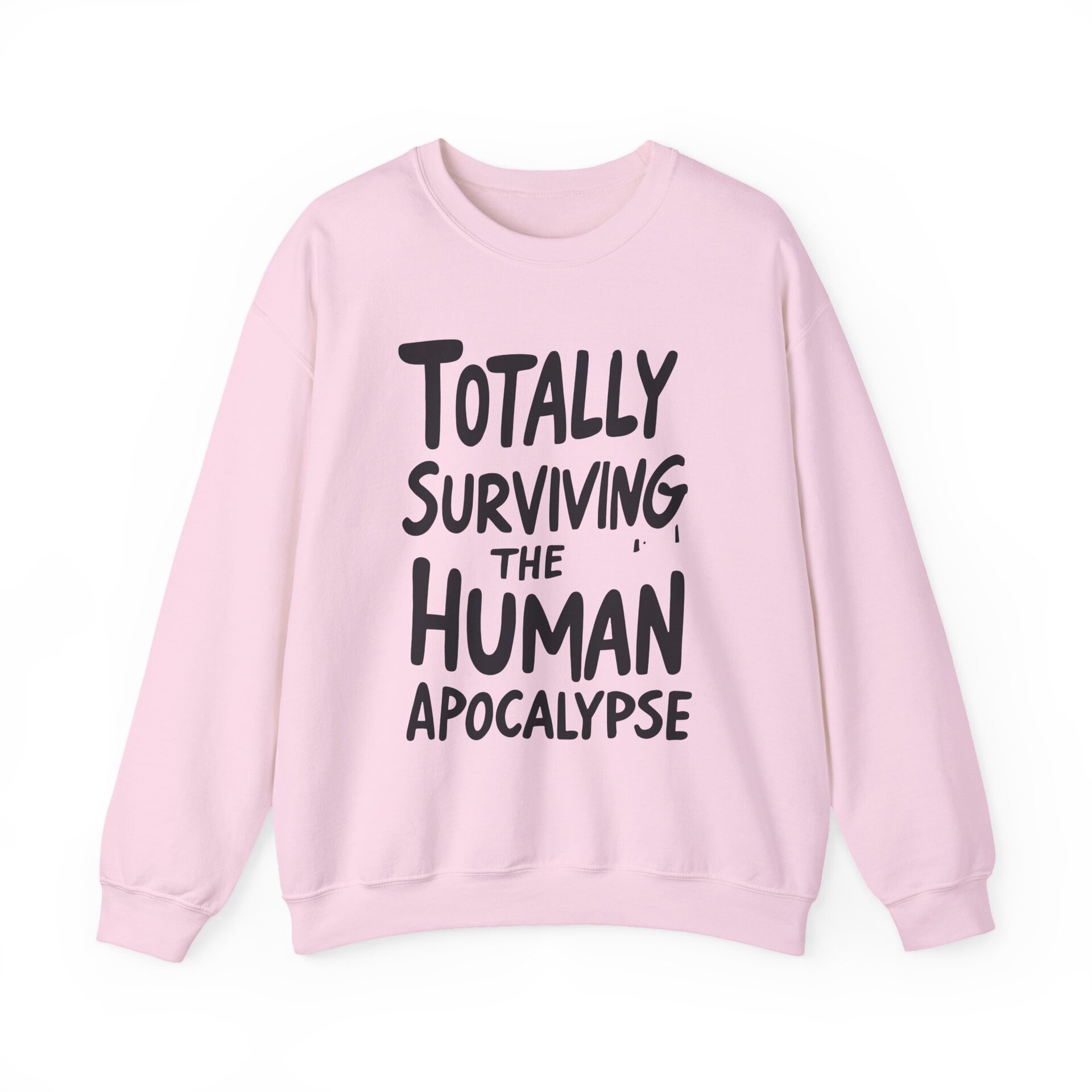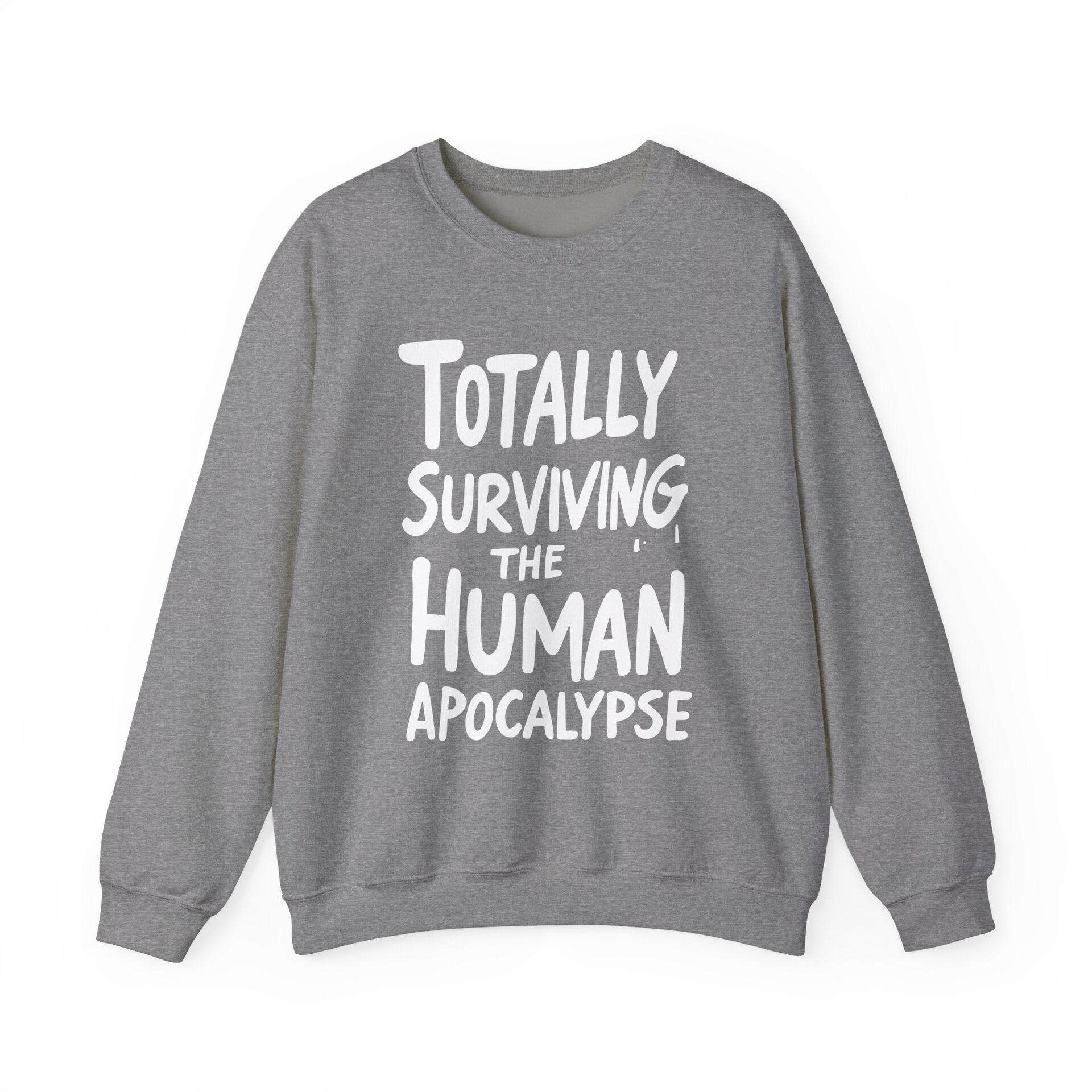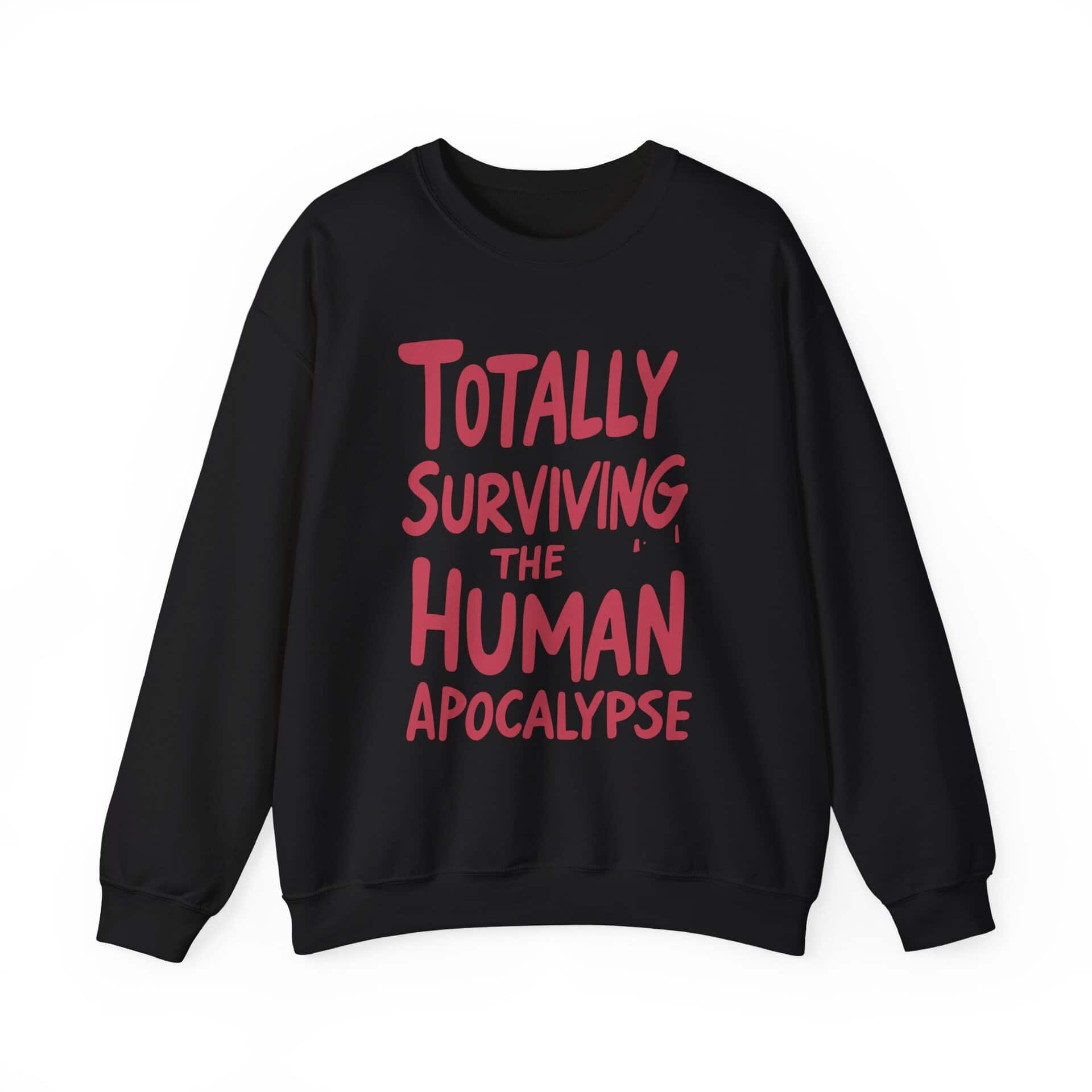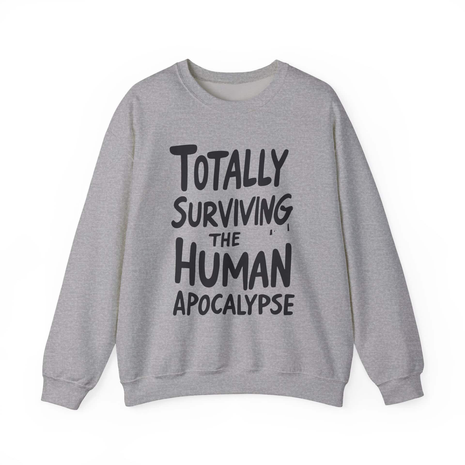 This crewneck is your wearable declaration of resilience, sarcasm, and temperature regulation. Whether you're braving the chill of a fallout shelter or just enduring another awkward bunker potluck, this sweatshirt says, “I’m still here, still warm, and still hilarious.”