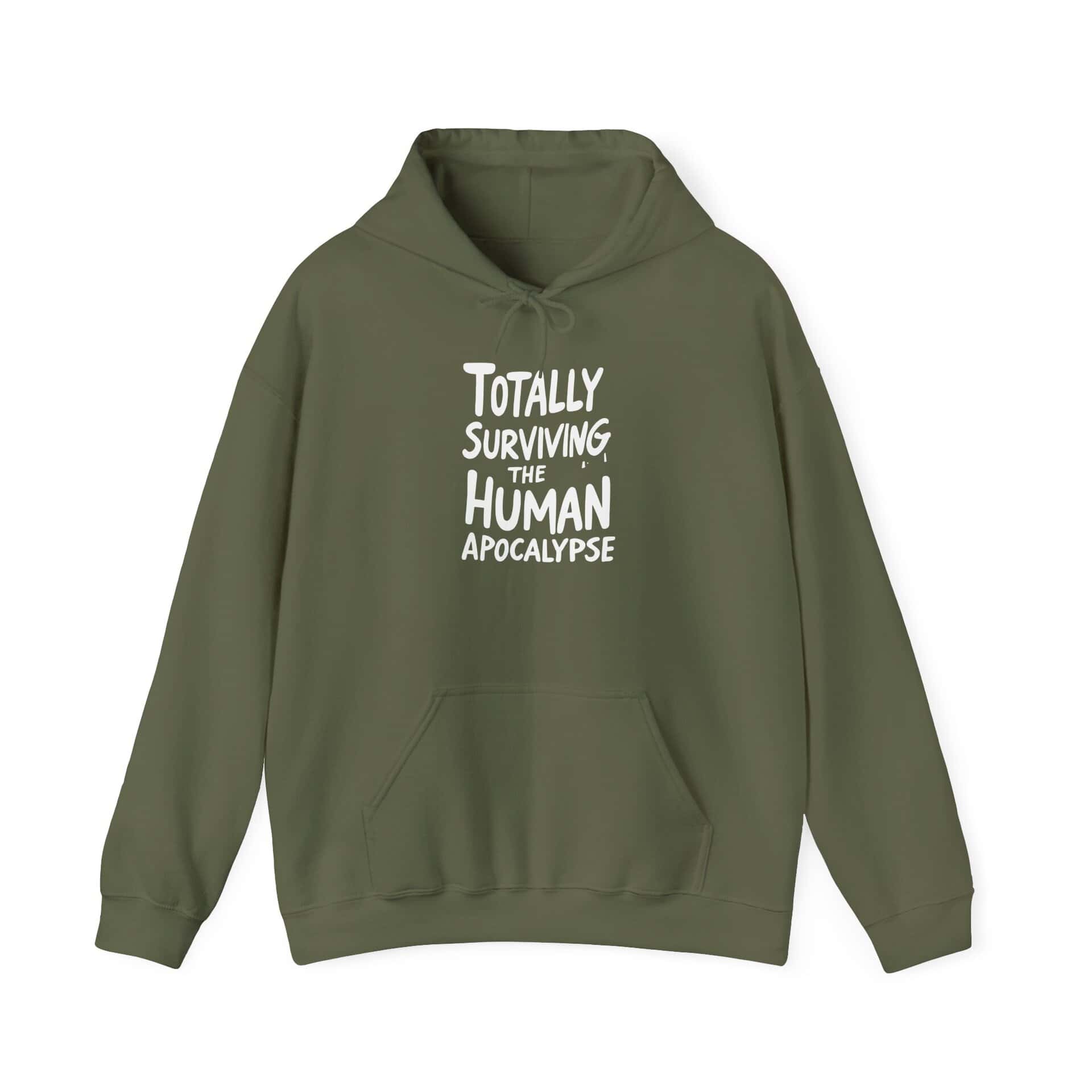 This hoodie is your wearable bunker—soft, durable, and just ironic enough to make the squirrels nervous. Whether you're braving the chill of a fallout zone or just dodging awkward eye contact at the post-apocalypse potluck, this sweatshirt says, “I’m still here, still warm, and still hilarious.”