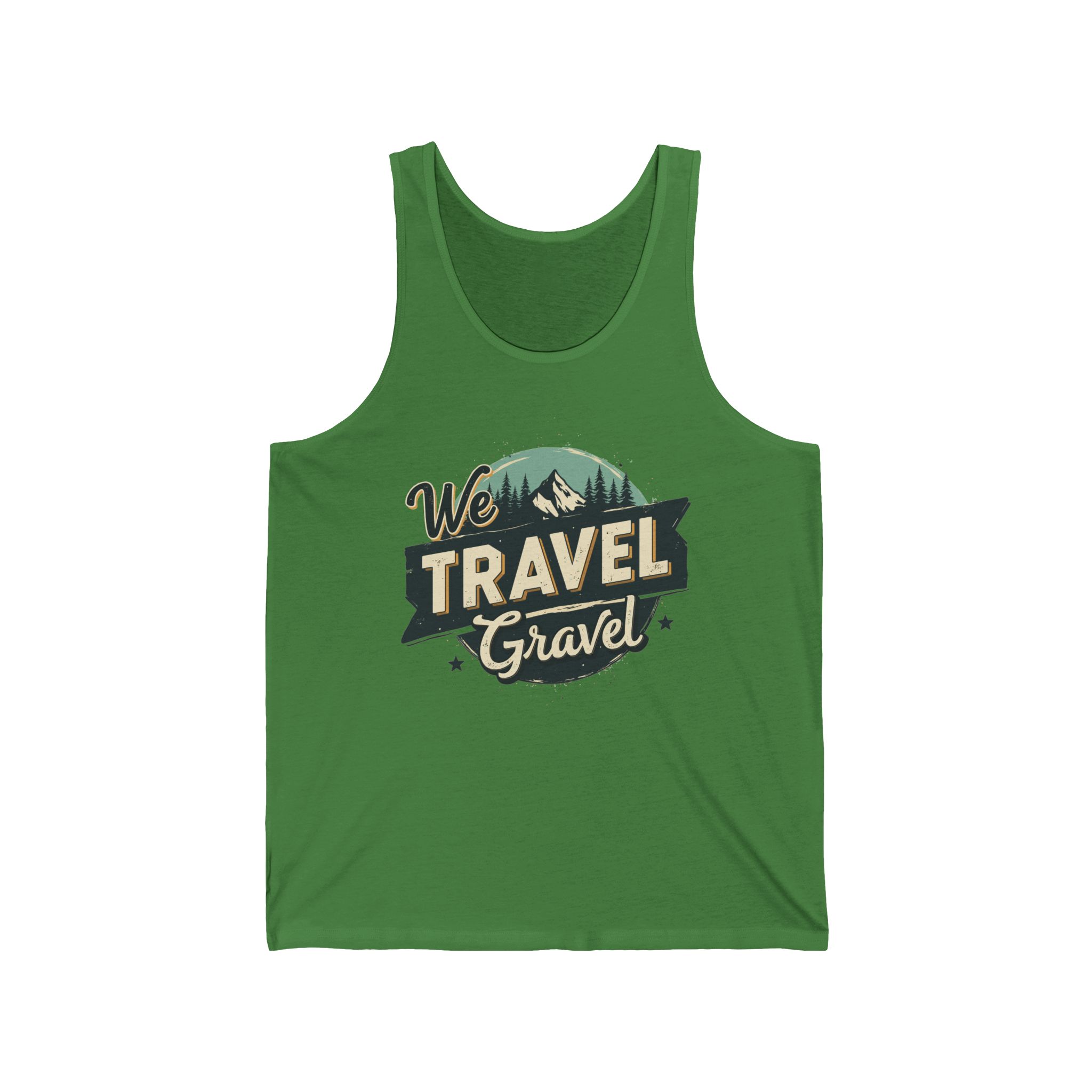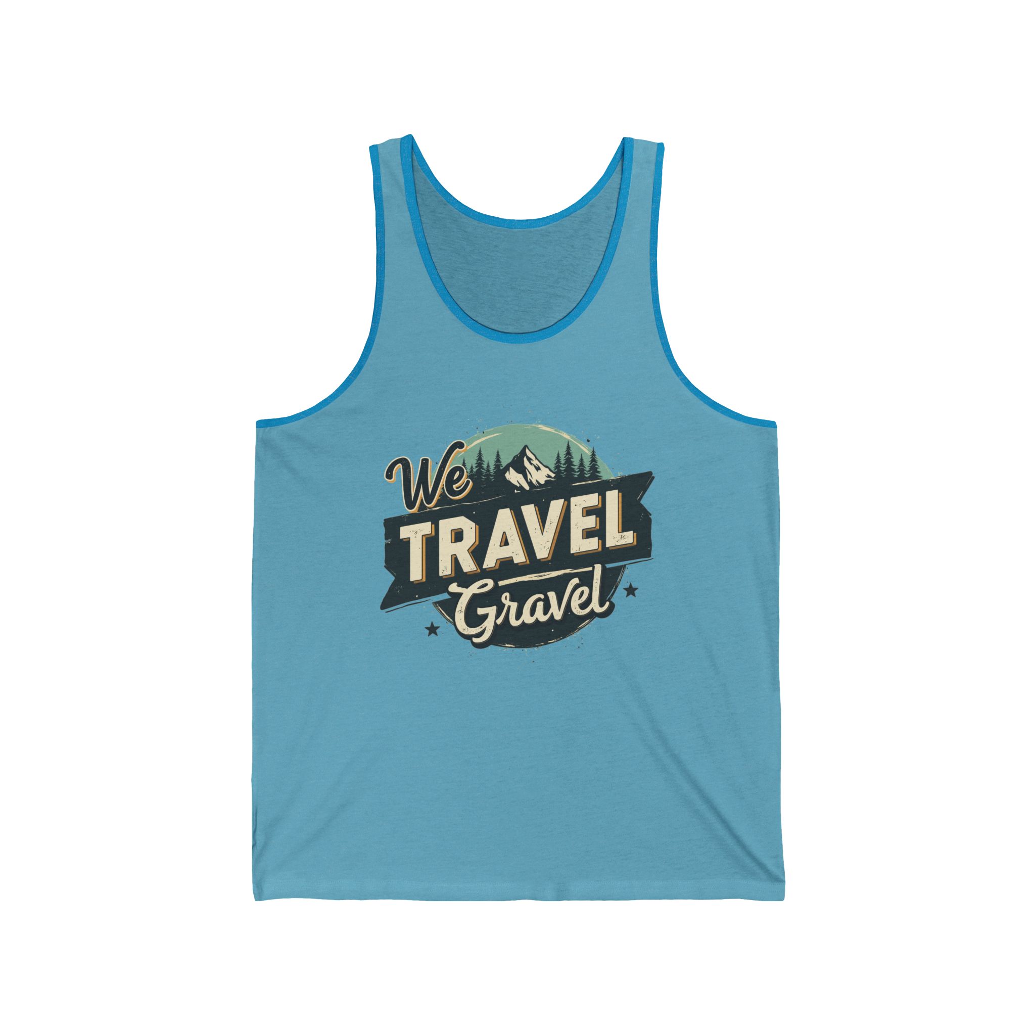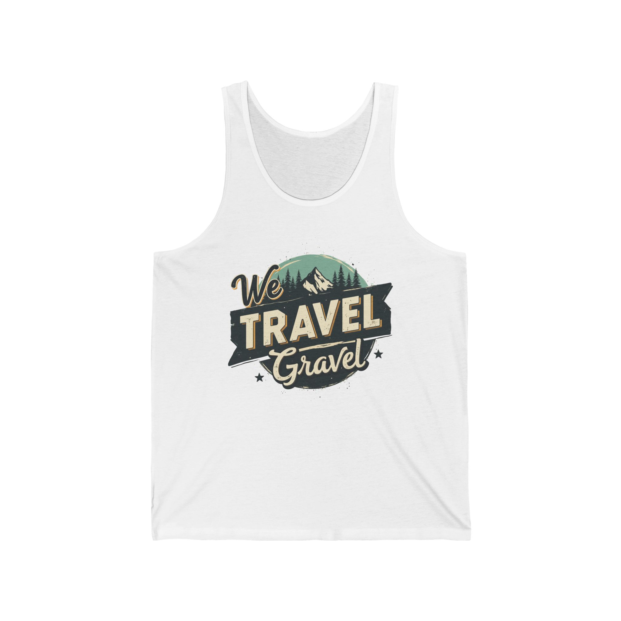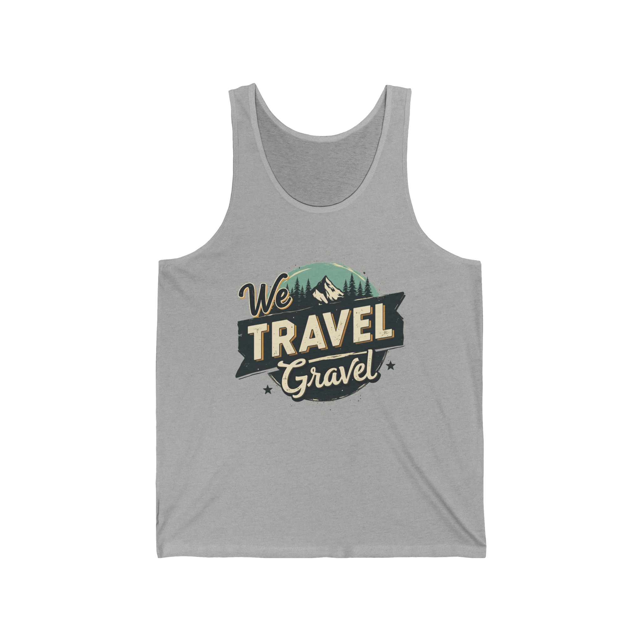 Unleash your inner adventurer with the We Travel Gravel Jersey Tank, perfect for those hot days when you're plotting your next escape! This tank is so comfy, you'll forget you’re wearing it—until someone asks where you got that stylish piece of wanderlust. Ideal for hiking, biking, or simply lounging while contemplating whether to take the scenic route to the fridge. Just remember: this tank won’t carry your gear, but it will definitely carry your dreams of adventure!