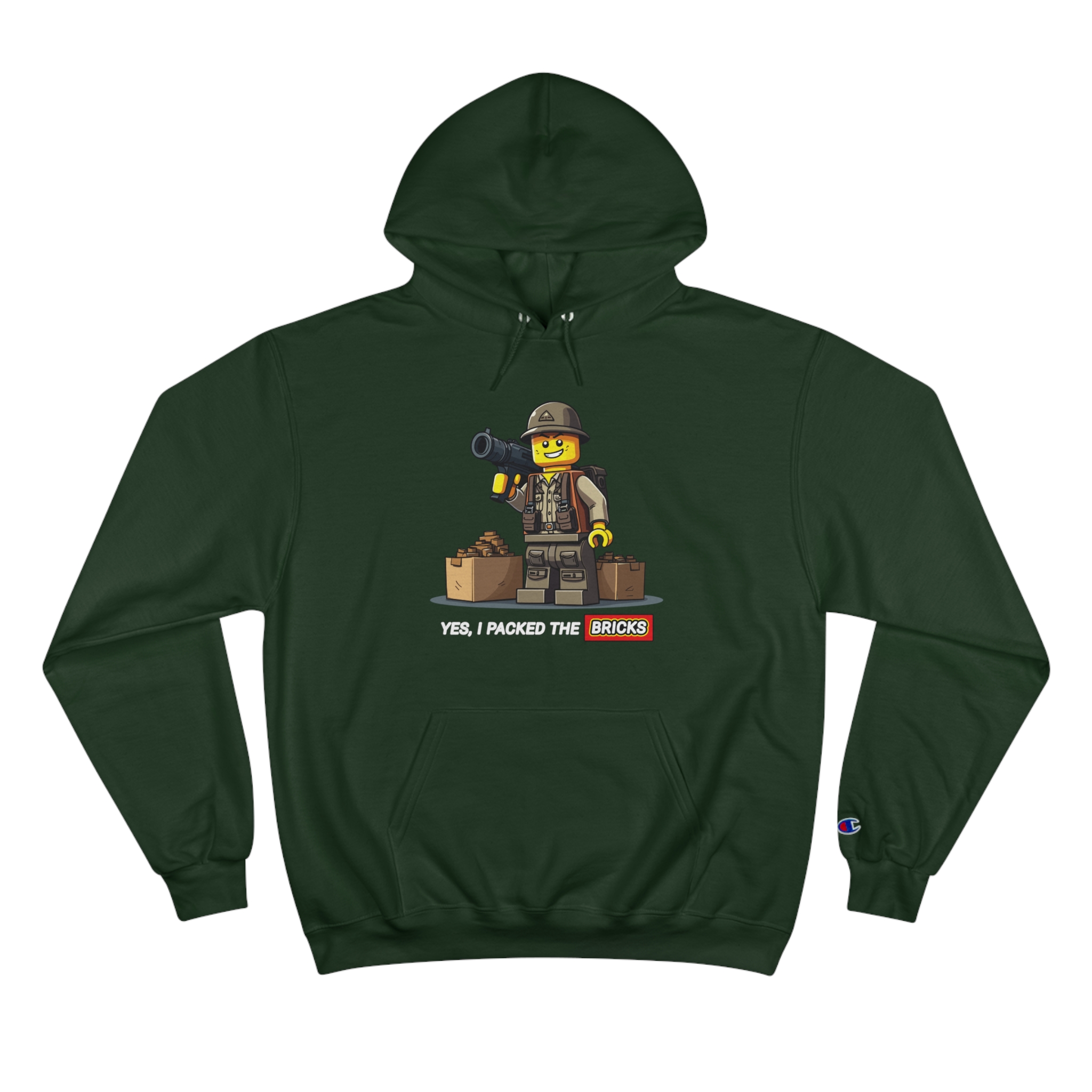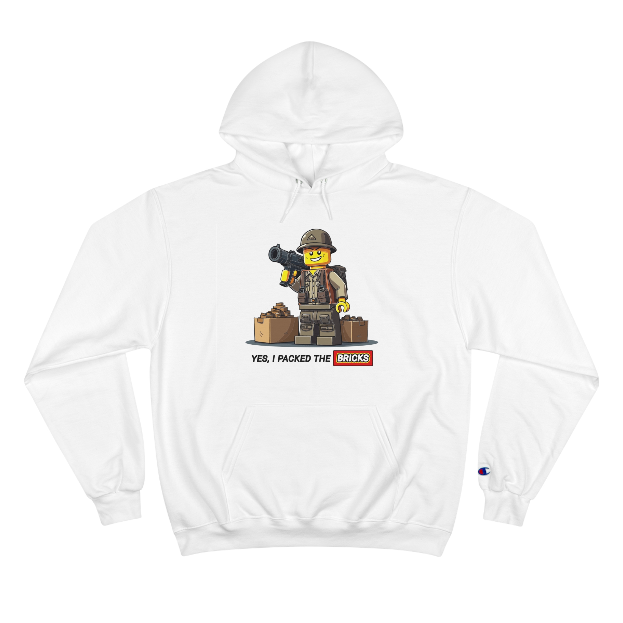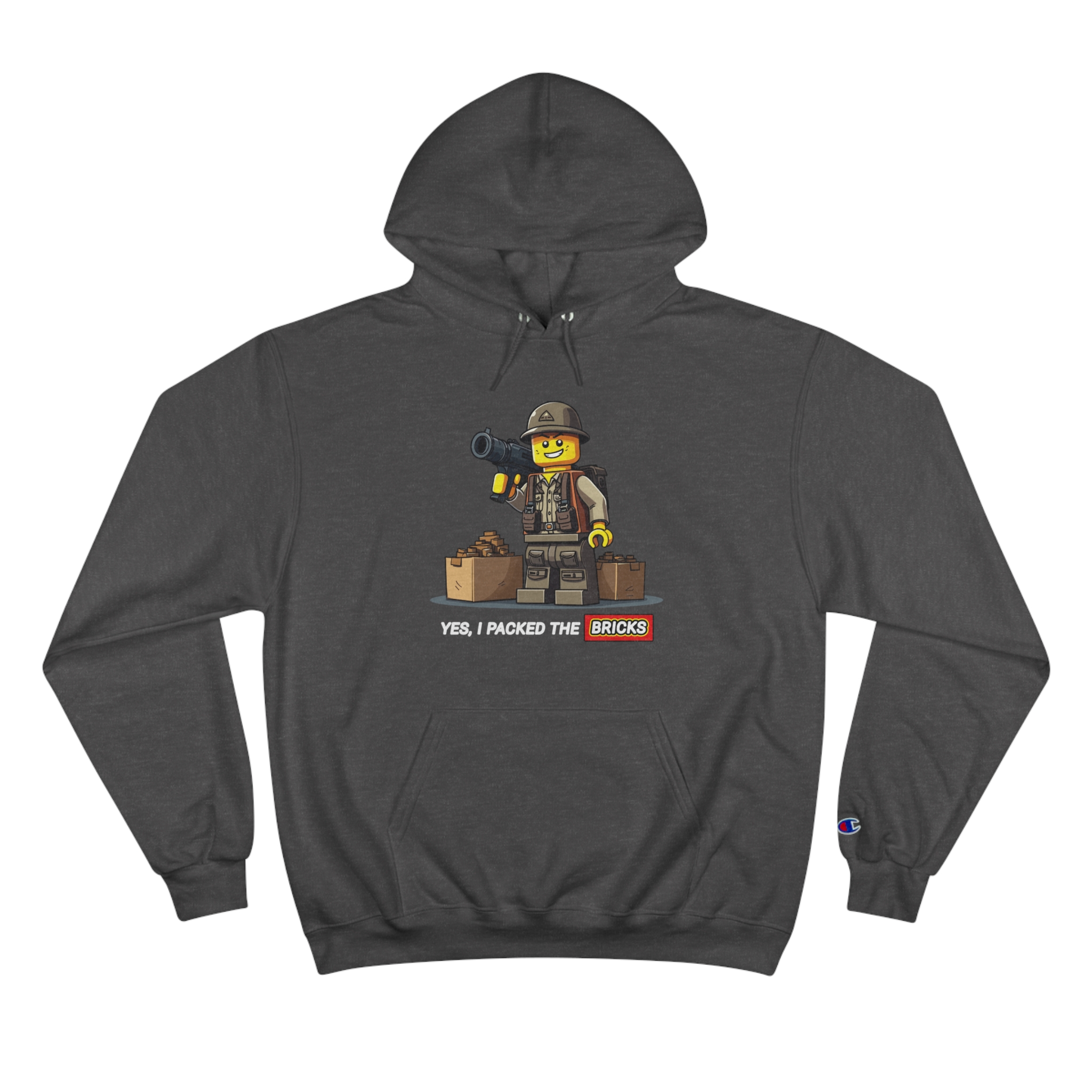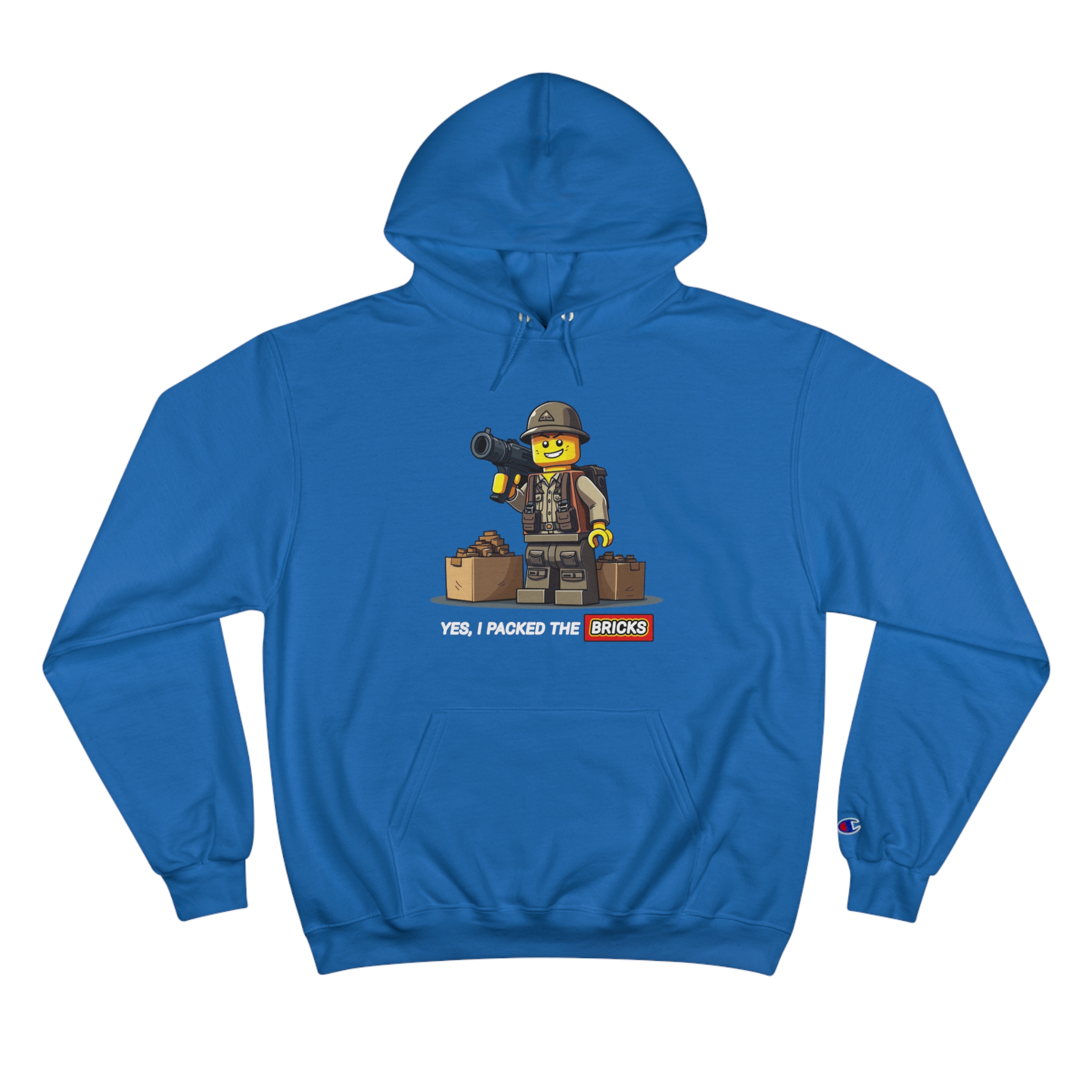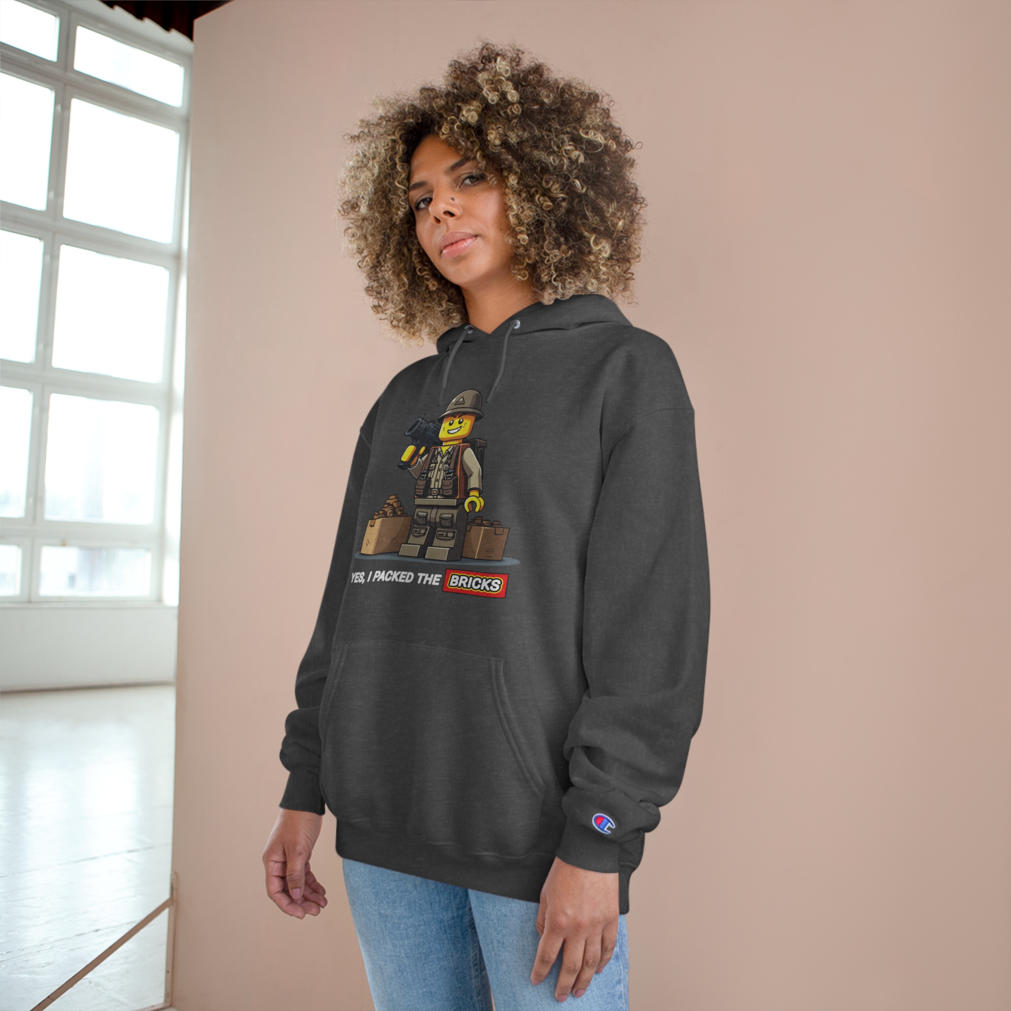 Stay cozy and prepared with our "Yes, I Packed the Bricks" Champion Hoodie! Perfect for those who know that in the event of an apocalypse, it's not just about canned beans and bottled water—it's also about having a stash of bricks to keep your creativity alive! This hoodie boldly declares your readiness to build a better tomorrow (or at least a really cool fort). Whether you're hunkering down or plotting your next epic creation, this hoodie has you covered. Because when the world goes sideways, it’s time to get building—one brick at a time!