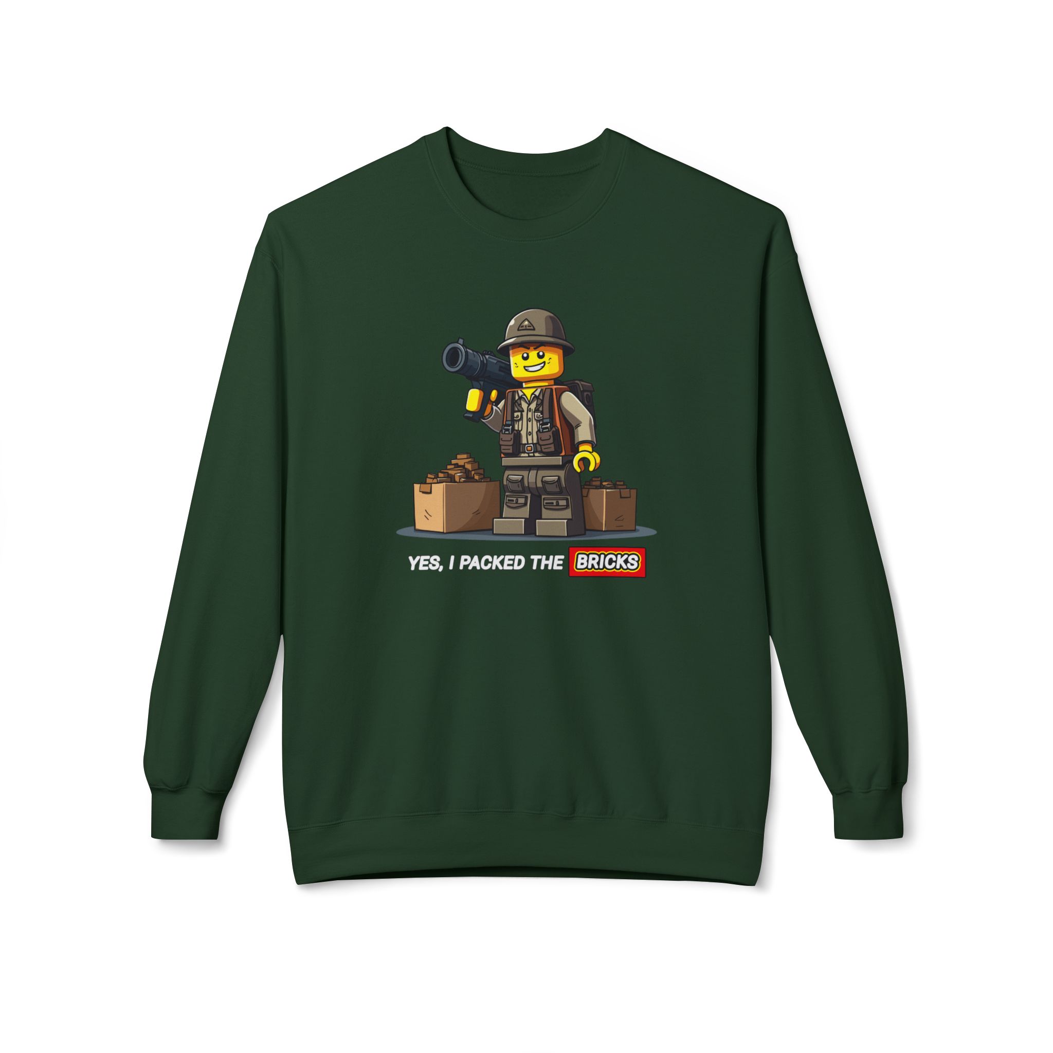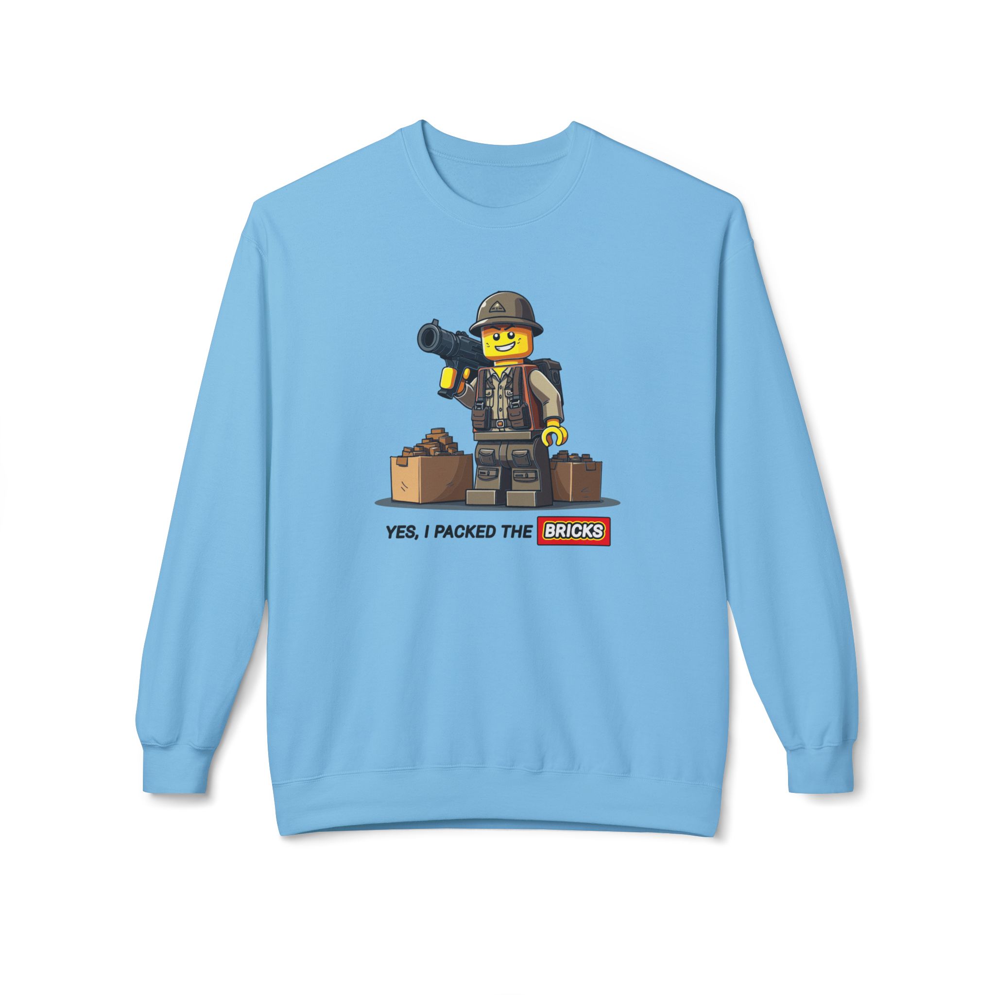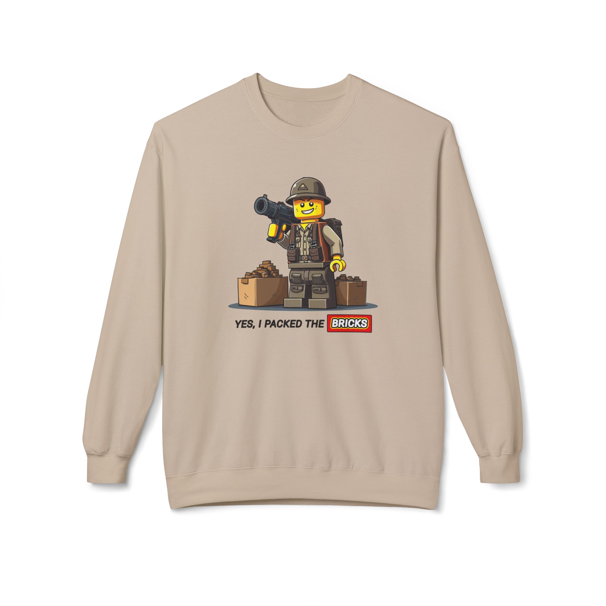 Be prepared with our "Yes, I Packed the Bricks" Midweight Softstyle Fleece Crewneck Sweatshirt! This comfy essential is your perfect companion for those chilly nights spent plotting your survival strategy. While others stockpile canned goods, you’ll be building a tiny epic fortresses. Ideal for lounging at home or gathering with the undead, this sweatshirt keeps you warm while reminding everyone that creativity is just as crucial in the apocalypse. So grab a drink, get comfy, and let’s build our way to survival—one brick at a time!