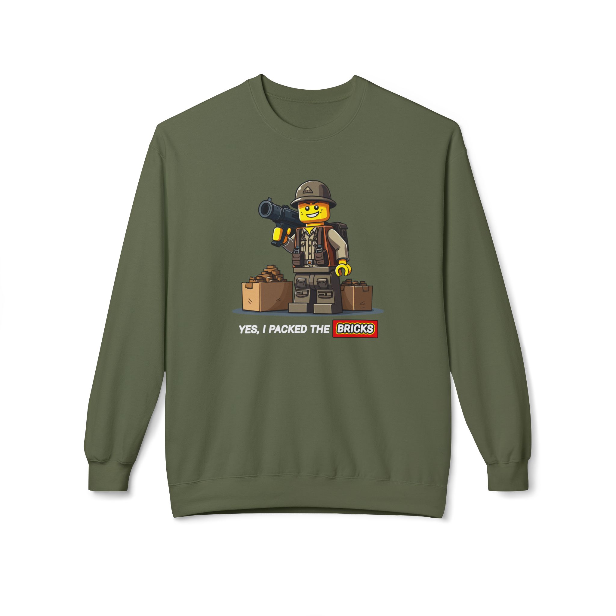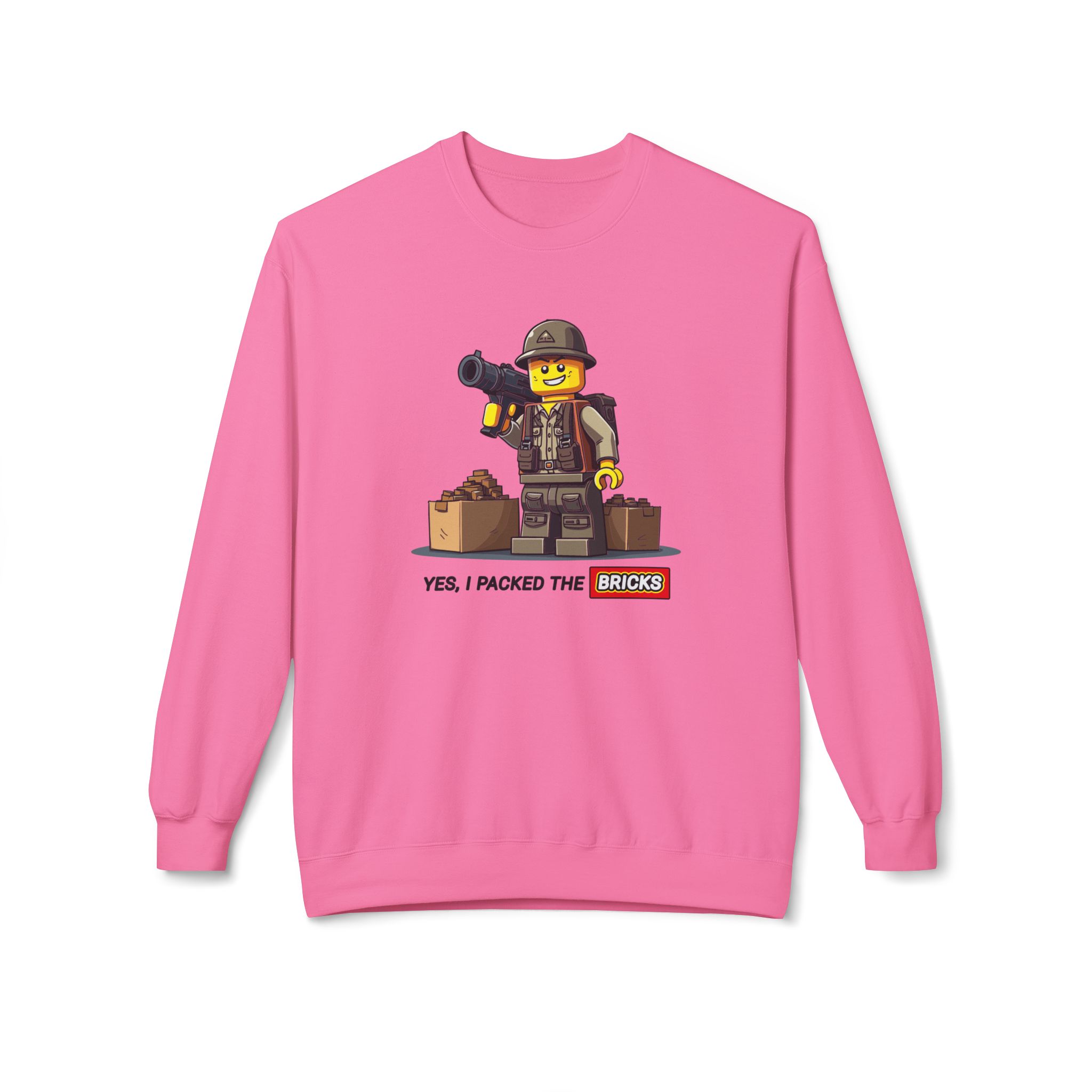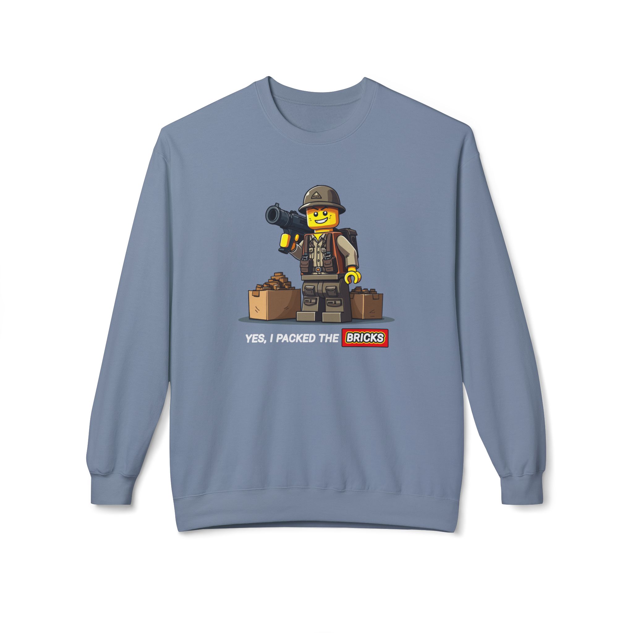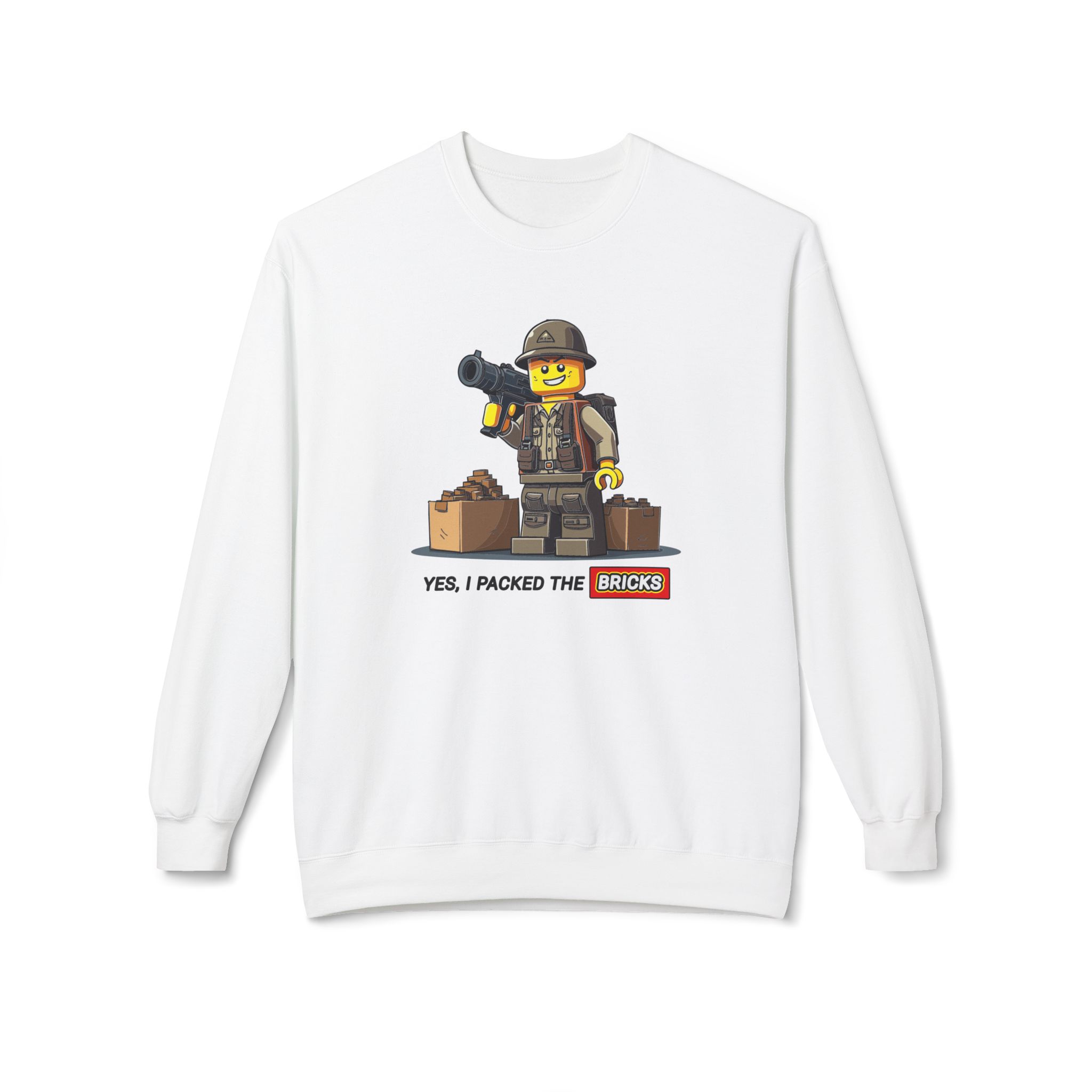 Be prepared with our "Yes, I Packed the Bricks" Midweight Softstyle Fleece Crewneck Sweatshirt! This comfy essential is your perfect companion for those chilly nights spent plotting your survival strategy. While others stockpile canned goods, you’ll be building a tiny epic fortresses. Ideal for lounging at home or gathering with the undead, this sweatshirt keeps you warm while reminding everyone that creativity is just as crucial in the apocalypse. So grab a drink, get comfy, and let’s build our way to survival—one brick at a time!